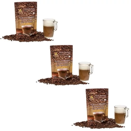 A csomag 3 db Ayura Herbal KOLLAGÉNES Családi Cappuccinot tartalmaz. A kollagénes cappucino egy rendkívül egészséges kollagénes italt foglal magába, melynek segítségével egyszerre élvezhetjük a kollagén és a kávé szervezetünkre gyakorolt kedvező hatásait. |