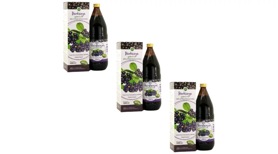 Berkenye gyümölcslé 100%-os Fekete Berkenyelé: tisztán facsart Fekete Berkenye gyümölcs - Aronia melanocarpa - Lengyelországból