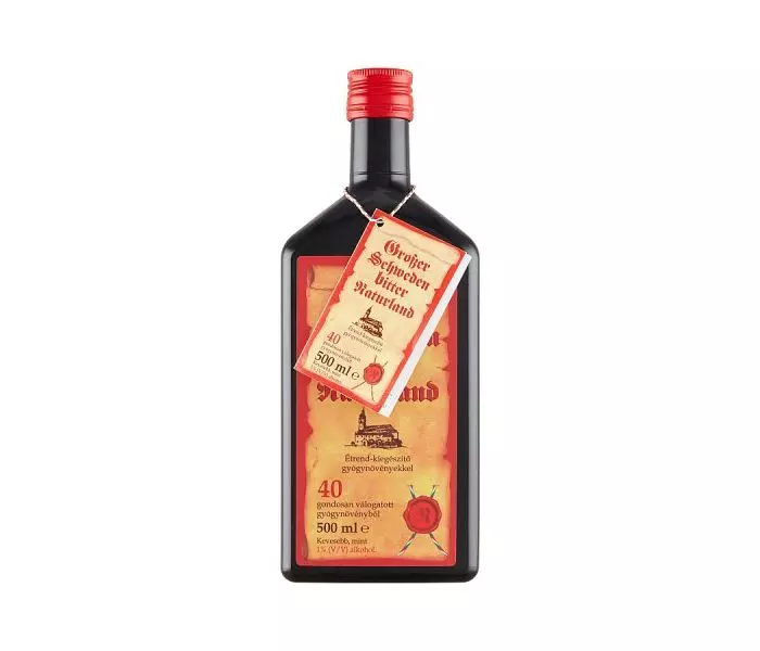A Großer Schweden bitter Naturland 40 gondosan válogatott gyógynövény kivonatát tartalmazó készítmény. A kis ezerjófű virágos hajtás-, gyömbér gyökértörzs-, benedekfű-, tárnicsgyökér- és orvosi pemetefű virágos hajtás-kivonat támogatja az emésztést és hozzájárul a bélrendszer normál működéséhez. A tárnicsgyökér-kivonat étvágyjavító hatású.