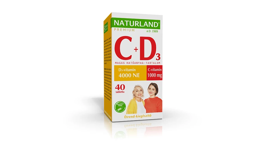 Naturland Prémium 1000 mg C-vitamin + 4000 NE D-vitamin tabletta 40x
