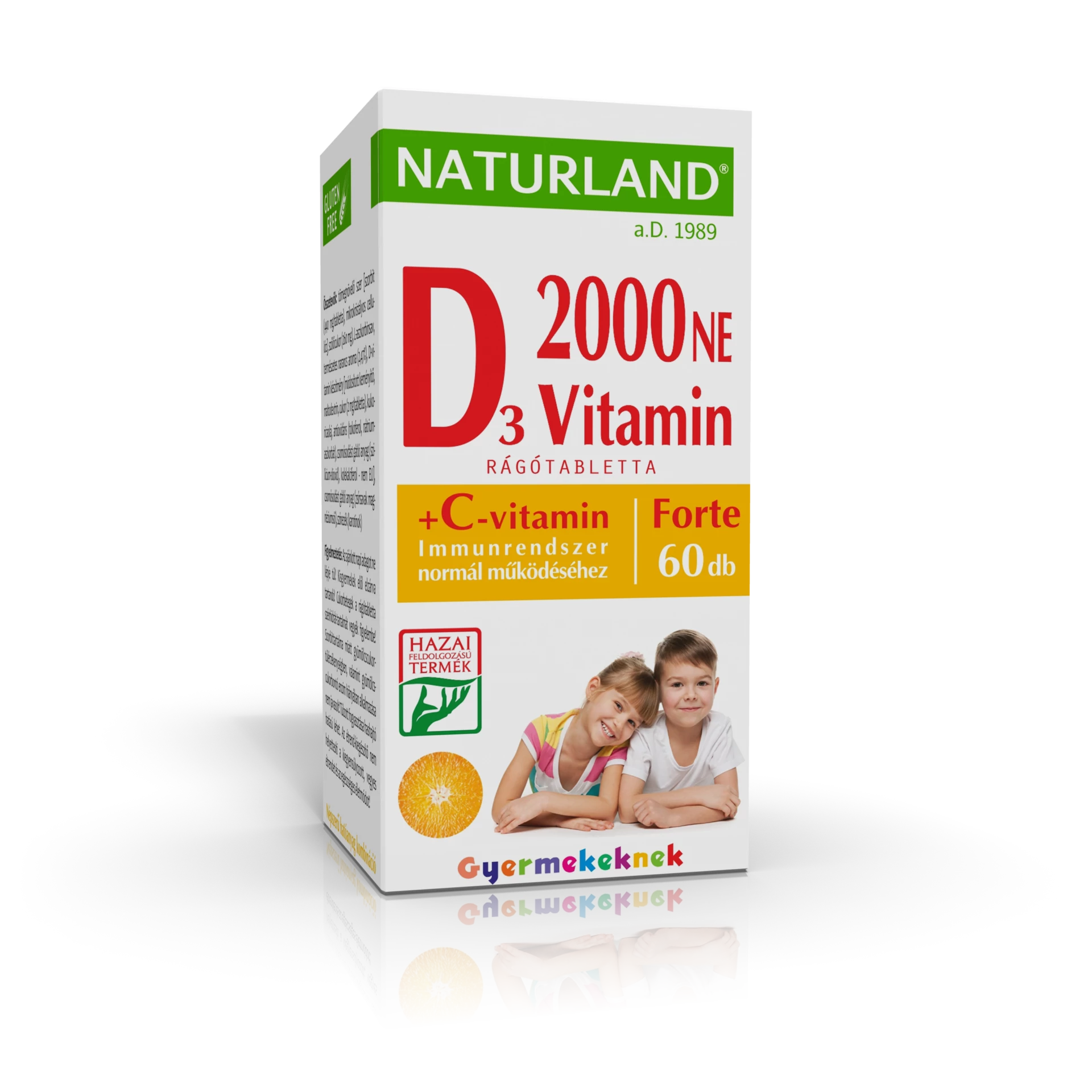 Naturland Prémium D3-vitamin Forte rágótabletta gyermekeknek C-vitaminnal 60x