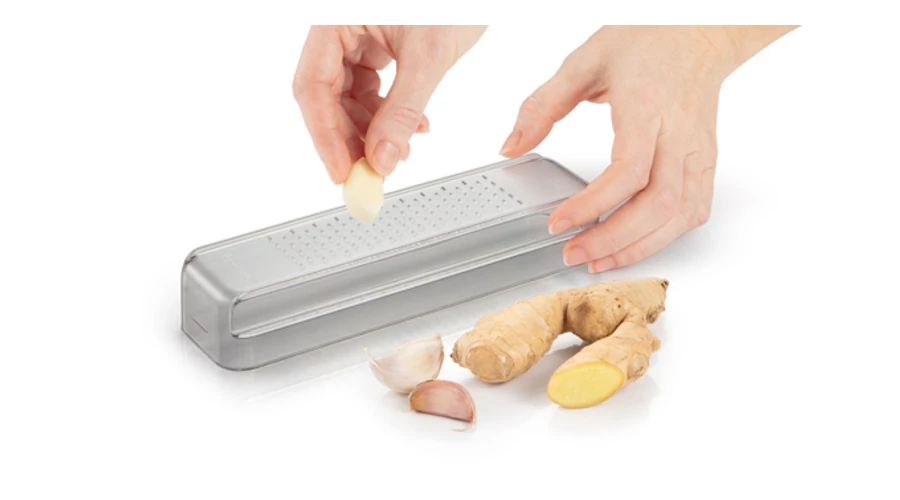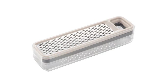 Rozsdamentes acél reszelők kis és nagy lyukakkal, egy dörzsölő reszelővel ellátott tálcában. Minőségi rozsdamentes acélból és strapabíró műanyagból készült, kompakt, rendkívül kis helyet foglaló készlet. Mosogatógépben tisztítható. 3 év garancia. | |