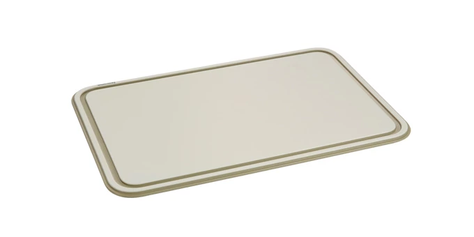 | Kétoldalas vágódeszka, felső oldalán folyadékgyűjtő vájattal. Ellenálló, újrahasznosítható műanyagból készült. Nem tompítja a kések élét, könnyen tisztán tartható, mosogatógépben is tisztítható. 3 év garancia. | |