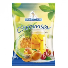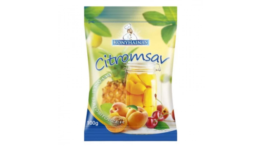 Citromsav (Beltartalom min. 99.5%), granulátum Felhasználható: Szörp, üdítő, dzsem, gyümölcsbor készítésére, savanyúságok, befőttek tartósítására, vízlágyításra. Alkalmazás és adagolás: Befőzéskor a citromsavas vízbe helyezett zöldség, gyümölcs megtartja eredeti színét és zamatát, ropogós és friss ízű marad. Az ízlés szerinti mennyiségű (befőttnél, savanyúságnál 3-4g/kg, gyümölcslénél 2-4g/L) citromsavat vízben feloldjuk, és a készítményhez hozzáadjuk. Citromlé helyettesítésére is használható, ebben az esetben 1 evőkanál citromsav 10 evőkanál citromlének felel meg. Tárolás: Száraz, hűvös, napfénytől védett helyen tároljuk. |